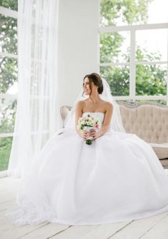 Дорогие девушки! Прдаю шикарное свадебное платье из необычного материала-матовая органза. Смотрится очень дорого, все думали, что купила заграницей за бешеные деньги. Очень удобный корсет, за целый день вообще не устанете. Платье в идеальном состоянии, без пятен и дырочек, после химчистки. На размер XS-S, смотря как затянете, рост 164-166. Есть небольшой шлейф. Из декоративных элементов пояс с бантиком спереди со стразами и сзади без страз. Будет идеально смотреться с богато украшенной фатой.
