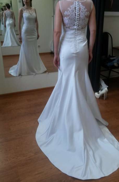 Продам свое изысканное свадебное платье со шлейфом. Б/у 1 раз. Цвет: белый. Ткань атласная. Кружевная спинка. Вшит пуш ап для груди 2 -3 размера. Пуговички на спине под жемчуг. Также вшита пуговичка для подкалывания шлейфа. Размер: 42. На рост: от 165см+Каблук. Цена: 12000 руб. Торг. В подарок при покупке платья- чехол для платья, вешалка для костюма жениха, дорогой гребень в прическу. Пишите! Питер.