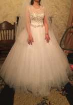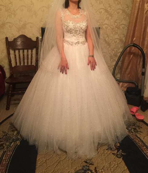 Платье шикарное на фото не видно всей красоты. Одевала всего на 3 часа потом переодевалась. Размер на корсете регулируется на 42-48. Рост 165-175. Кольце под платье отдам бесплатно. Отправлю в любой город по почте. Торг уместен!