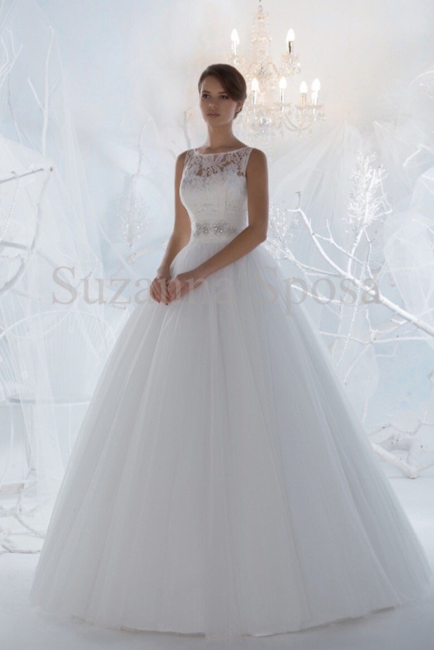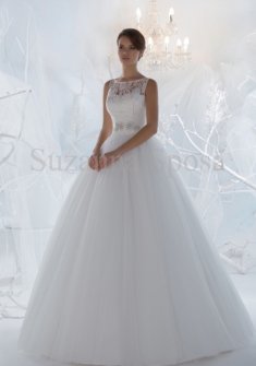 Белое пышное платье А-силуэта MilanoVera. Вместе с платьем отдам кринолин на 7 колец и искусственный полушубок 42-44 размера.