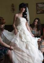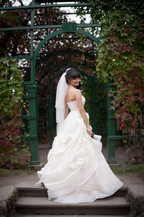 Одевалось 1 раз, небольшой шлейф, цвет платья - айвори. Корсет идеально сидит, на спинке шнуровка. Нежное и красивое платье.