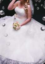 Свадебное платье цвета Айвори размер:46-48. В отличном состоянии , произведена химчистка. Покупали в салоне "Праздник". Из коллекции Российского дизайнер Tatiana Kaplun.+кринолин на два кольца. Есть перчатки.