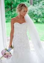 Платье с корсетом, на спине завязки. Все платье расшито вручную. Куплено в фирменном магазине в Стокгольме (чеки, бирки и чехол остались). Фато в подарок.