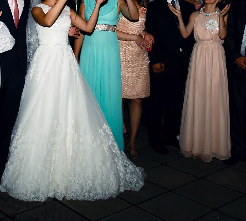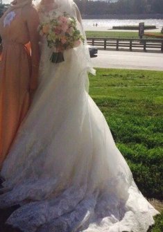 Дорогие невесты, продаю А-силуэтное свадебное платье цвета айвори ручной работы с шикарным шлейфом в отличном состоянии после европейской химчистки (без фаты!). Шилось по индивидуальному заказу в г. Москва, надевалось 1 раз на несколько часов. Торг уместен.