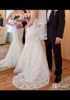 Платье силуэта рыбка со шлейфом (шлейф можно пристегнуть так, чтобы он не волочился по земле), расшит дорогими бисером и стеклярусом, мой рост 170, можно на невесту ниже т.к. юбку можно подрезать (там ткань сетка) и тогда шлейф станет длинные просто. Шикарное дорогое платье бренда Eternity Bride производства Англия. Цвет нежный Айвори.
