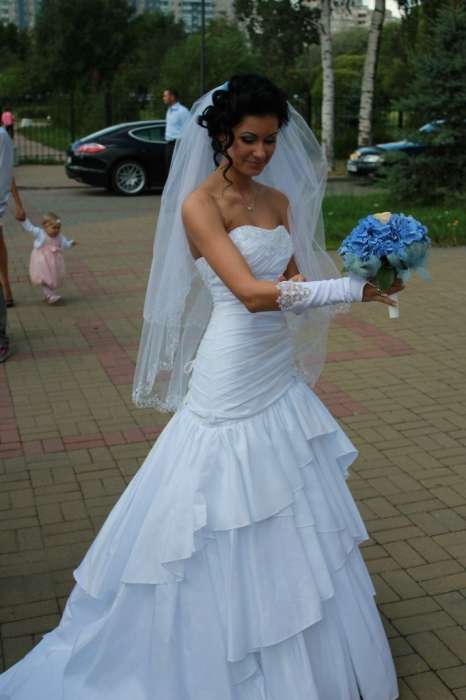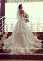 Продаю свадебное платье, размер 40-44 (регулируется, так как корсет можно затянуть). Шлейф 3 метра, он не съемный, но пристёгиваются под верхние слои платья и становится совершенно не заметным и не мешает. Очень красивое и дорогое. Покупала в свадебном салоне "Интерстиль" за 45 000 руб. Продаю за 7 000 руб. В отличном состоянии. Чистое! Побывало в химчистке!