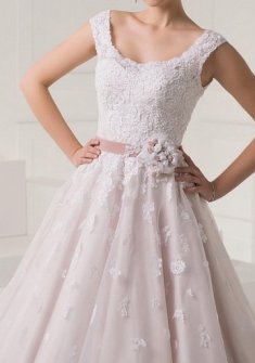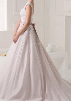 Продам элегантное, утонченное, пышное итальянское свадебное платье Roberta с небольшим шлейфом. Цвет Айвори-пудровый. Лиф, бретельки и верх юбки платья украшены расшитым кружевом. Корсет на шнуровке, что позволяет варьировать размер. Бархатный пояс ручной работы завязывается в бант. Платье в идеальном состоянии, после химчистки.