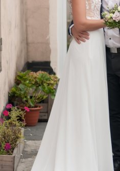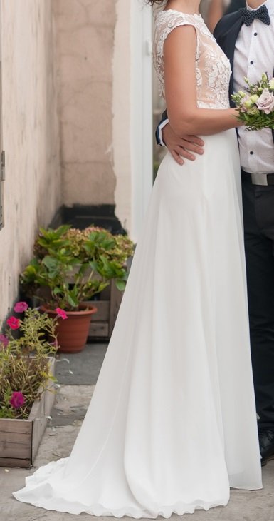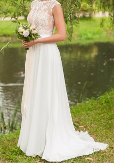 Продам нежное свадебное платье в отличном состоянии, после химчистки. Покупала за 29000 р. Верх на 42 р-р (корсет), низ на 44 р-р. В платье есть разрез от бедра, в моем платье этот разрез зашит только на шифоне до колена. При желании сможете вернуть разрез. Смотрится платье шикарно, невероятно легкое и удобное.