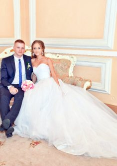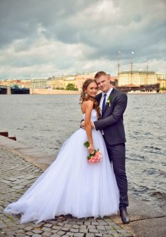 Дорогие девушки, продаю шикарное свадебное платье со шлейфом, высокое качество ткани, приятное к телу. За весь день совершенно в нем не устала, и даже не хотелось снимать. Почищено в химчистке, в подарок отдаю кольца, покрытие не сеткой, а шелковой тканью - разница ощутима, поверьте. Расставаться с ним жаль, но лежать такой красоте в шкафу глупо!(ТОРГ)