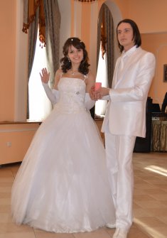 Платье шилось у талантливого дизайнера. Образ проработан, все элементы платье, фата, перчатки сделаны в одном стиле. Колье и серьги, также подбирались. Корсет платья украшен кружевом и расшит вручную. Есть возможность вставить прозрачные лямки (для этого специально пришиты петельки). Фота нежная, по ее краю проходить линия кружева, а на правой стороне кружевная аппликация. Главное достоинство платья, это ОРИГИНАЛЬНОСТЬ! Оно единственное во всем свете!