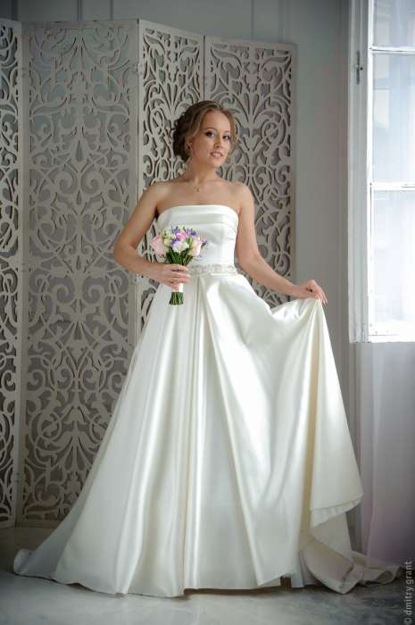 Шикарное атласное платье, А-силуэт, с изящным пояском. Аккуратно прикрывает грудь, ничего не торчит, сзади на шнуровке. Мой рост 158 см, подшивали по мне, но, думаю, пару см сверху, если вы выше, некритично. Имеется кринолин, туфельки атласные, сумочка Булгари, тоже атласная. Живу у метро Гражданский проспект. Звоните - договоримся )