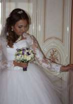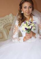 Продам свое счастливое свадебное платье. Покупала в салоне, одевала один раз. В подарок отдам кренолин и абсолютно новые туфельки под платье (туфли не надела ни разу, размер не подошел), размер 37-37, 5. Платье на корсете со шнуровкой. Размер 42-44-46 верх платья сделан из нежного кружева и обшит камнями сваровски. Платье смотрится очень изящно. Возможен торг.