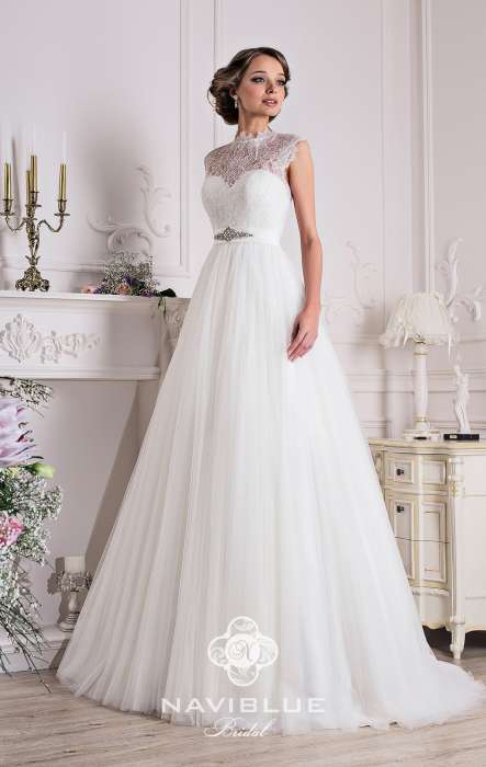 Продам свадебное платье, со шлейфом, А-силуэтное. Хорошее состояние!Фирма Naviblue. Размер 42-44, на рост около 170 см. Грудь - чашка B. Длина от талии до нижнего края платья: спереди 120 см, сзади 150 см.