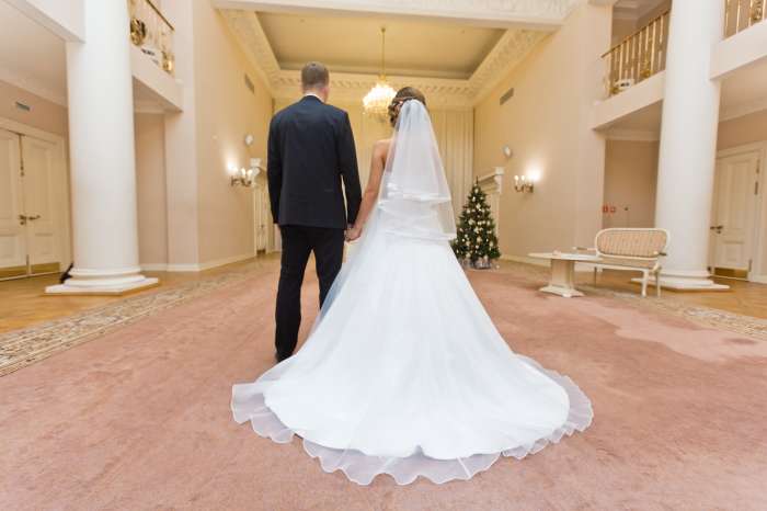 Продаётся свадебное платье со шлейфом. Одевалось один раз на пару часов (регистрацию брака и фотосесию). Было два платья. К платью отдам подъюбник с кольцами и подъюбник из ткани. Пояс обшит бусинами. Размер 44-46, но думаю подойдёт на 42р. Сзади шнуровка.