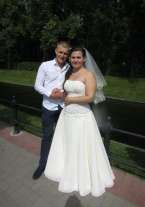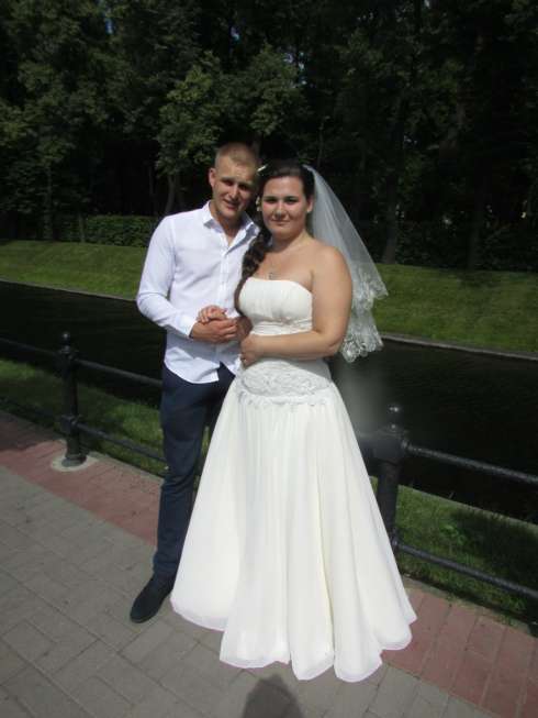 Корсет на молнии и ленте, украшен бисером, искусственным жемчугом и пайетками, вставлены вертикальные косточки. За счет удлинённого корсета фигура кажется стройнее, а рост выше. Зона декольте очень хорошо подчеркивается. Юбка из 3 слоёв, хлопок, атлас и шифон, придает легкость. Кринолин сама не одевала, но можно и с ним. Подойдет беременным на маленьком сроке. Выходила замуж в июле 2015 года, с тех пор висит в шкафу, жалко выбрасывать, ТОРГ уместен.