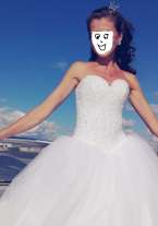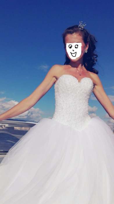 Платье "Алба" покупалось на второй день, почти не носилось. Состояние идеальное! Очень красивый корсет, состоит полностью из кристаллов. На солнце играет- просто сказка, нет слов (эффектно, как-будто хрустальная талия)!!!! Отлично держит грудь, подходит на маленькую грудь. Платье подойдет от 40 до 44 размера! Рост (мой 167 + каблук 10 см - можно и выше). Юбка очень пышная, кринолин не нужен. Я покупала кринолин, но почти сразу сняла. С платьем в подарок вешалка и чехол. Рекомендую!!!!
