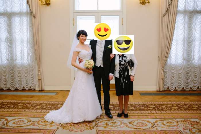 Продаю платье из креп кружева 42-44 размера. В ателье к лямочкам пришивала кнопки, удалила сзади пуговицы и вместо молнии сделала корсетную шнуровку на подкладке, поэтому платье можно посадить на разные фигуры и размеры. Чашки не вшивала, поэтому можно красиво посадить на любую грудь. К подолу пришиты пуговка, на которую можно пристегнуть шлейф для удобства, а чтобы платье не касалось пола, пришита лента для ношения на запястье. После химчистки белоснежное, выглядит как новое.