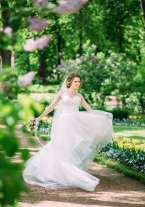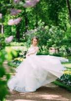 Очень красивое и нежное свадебное платье. Атласный корсет на шнуровке идеально подчеркивает грудь. Юбка многослойная пышная с красивым длинным шлейфом, который можно аккуратно незаметно заколоть. Надето было на пару часов на регистрацию и для фотосессии, после сразу было отдано в химчистку. Платье 2016 года.
