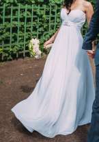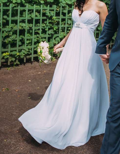Нежное платье в стиле ампир, с оригинальным вырезом на корсете и элегантной брошью. Платье в идеальном состоянии, после химчистки. Имеются также туфли 37 размера.
