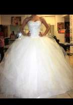 Продам пышное свадебное платье Jastin Aleksander модель 8158,выполненное из шёлкового тюльмарина. Корсет из натурального шелка вышит вручную множеством камней Swarovski. Имеется шлейф,пристегивается. Цвет шампань. Покупалось январь 2009года за 65тысяч. Размер 8,корсет регулируется лентой. Возможен торг.