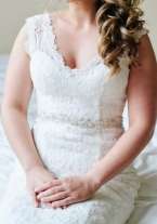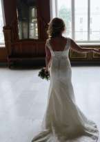 Платье силуэта рубка на широких кружевных бретелях с красивым шлейфом, который затем можно пристегнуть сзади. Платье покупалось в салоне, после химчистки.Цвет айвори.