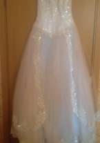 Платье новое,т.к перед свадьбой было куплено другое В комплекте идут фата и болеро. Застежка- молния и корсет.