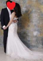 Изысканное свадебное платье. Силуэт - рыбка. Цвет - айвори. Сзади шнуровка. Чашечки вшиты. Платье покрыто кружевом светло-бежевых и светло-розовых тонов с добавлением страз Swarovski. Было надето 1 раз.