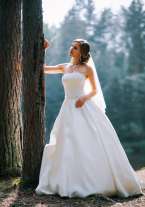 Платье из королевского атласа с невероятным кружевным корсетом. Атлас не мнется. Платье с удобным шлейфом. В комплекте кринолин, украшения для полного образа, чехол.