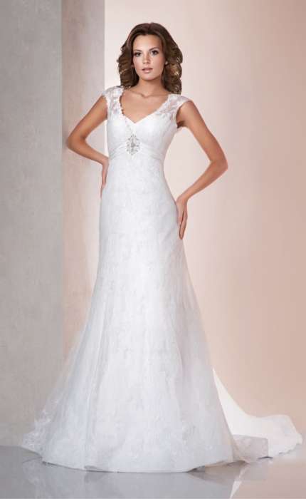 Нежное свадебное платье А-силуэта цвета айвори смотрится изысканно благодаря комбинации тонкого кружева с мелким цветочным узором и соблазнительного выреза «замочная скважина», открывающего спину. Атласный пояс со сверкающей вышивкой и кружевом на талии завязывается бантом,к полу спускаются крупные волны ткани,образующие шлейф средней длины. Дополнительно пришита пуговка для шлейфа и вшиты чашечки для эффекта push-up.В подарок отдам двухъярусную фату с нежными бусинками-жемчужинами по краям.
