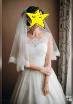 Платье было куплено в салоне, который имеет свое собственное производство. А-силуэт. Платье после химчистки, в хорошем состоянии. На корсете нежное кружево, на верхнем слое юбки узор, понизу широкое кружево. Пояс расшит тонкой полоской бисера. В связи с тем, что платье собственного производства салона, оно очень качественно сшито. Корсет удобный, нигде не морщится, кружево не натирает. К платью отдам кринолин на три кольца, также сшит в салоне. Китайский кринолин к нему не подойдет, проверяли.