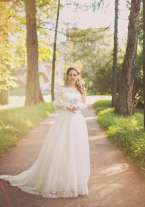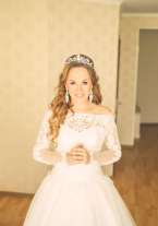 Размер платья 42-46 Материал: французский фатин, греческое шитье, атлас. Фасон: пышное (если с кринолином), с кружевными рукавами, также кружева на подоле платья и на шлейфе. В цену включен кринолин из 3 колец. Возможен торг.