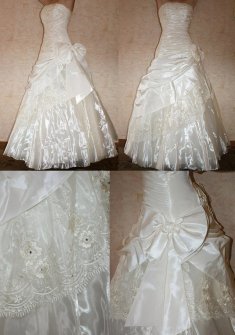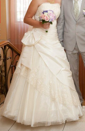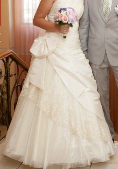 Продам красивое свадебное платье: 42-48 р-р(корсет), заниженная талия, A-силуэт, цвет: слоновая кость. Чехол и подъюбник (3 кольца), перчатки и фата в подарок.