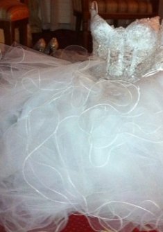 Свадебное платье с пышной многоярусной юбкой. Верхняя часть (корсет) расшит стразами Swarovski и жемчугом.