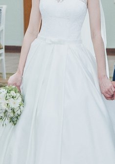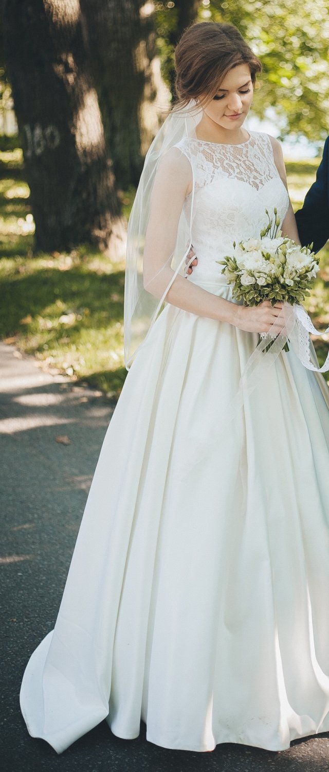 Продам свадебное платье Suzanna Sposa в идеальном состоянии (после химчистки) Кружевной верх,атласная юбка с двумя карманами, небольшой шлейф,на шнуровке,сзади на спине небольшой вырез, подшито на рост 165 + каблук 10 см, в подарок кринолин на 3 кольца, платье очень красивое, элегантное,счастливое, весь день делали комплименты!)) Торг уместен)