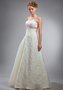 Необычное, запоминающееся богатством фактур свадебное платье. Классическая форма лифа с контрастной по цвету лентой под ним подчеркнет женственность фигуры. Талии прорисована изящной драпировкой. Но основная изюминка - юбка. С одной стороны - легкая воздушная складка, с другой - А-силуэт из ткани, украшенной крупной вышивкой. Это роскошь, доступная каждому!