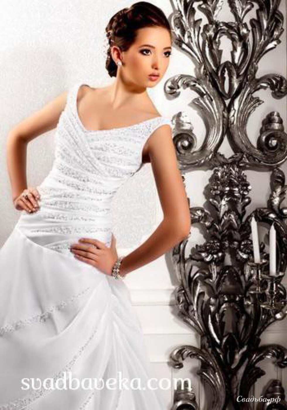 Свадебное платье А-силуэта, украшенное жемчугом и камнями