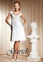 Кокетливый свадебный наряд из тонкого шифона представлен известным брендом Garteli. Широкие бретели-плечики обрамляют зону декольте и придают наряду романтичность. Завышенная талия подчёркнута пояском. На груди – сверкающая вышивка. Юбочка приоткрывает колени. В наличии представлен наряд белого цвета в размере 44 и цвета айвори - размер 46.