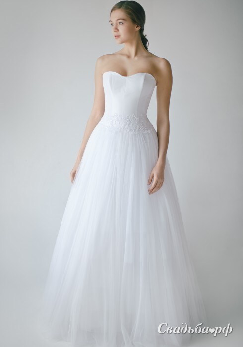 Мечтаете о нежном образе невесты? Этот свадебный наряд от именитого отечественного бренда Topaza Pella поможет Вам в этом! Гладкий корсет с оголённой зоной декольте подчёркивает бюст и талию. В меру пышная юбочка из невесомой ткани струится до пола. Граница между корсетом и юбкой декорирована тонкой вышивкой ручной работы.