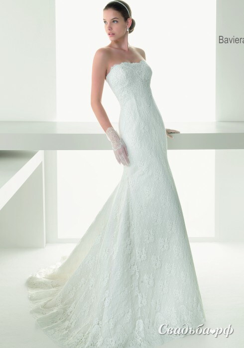 Кружевное свадебное платье от испанского бренда Rosa Clara идеально садится по фигуре и подчёркивает соблазнительные изгибы тела. Корсет с открытой зоной декольте акцентирует внимание на оголённых плечиках невесты. От середины бедра юбка расширяется и постепенно переходит в роскошный шлейф. Модель покоряет своей лаконичностью с первого взгляда.