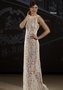 Пикантный свадебный наряд из полупрозрачного кружева представлен отечественным брендом Topaza Pella. Зона декольте закрыта. Модель нежно обволакивает свою обладательницу, деликатно подчёркивая достоинства силуэта. Длинная юбка прямого кроя визуально вытягивает фигуру: Вы будете ещё выше и стройнее! Наряд отличается минимализмом декора.