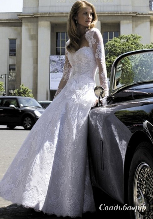 Французский бренд Cymbeline представляет Вам кружевное свадебное платье А-силуэта. Модель с открытой зоной декольте и длинными рукавами подойдёт для венчания. Корсет идеально садится по фигуре и выгодно подчёркивает её достоинства. Длинная юбка придаёт образу неземную лёгкость. Минимализм декора сочетается с роскошными формами.