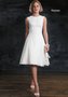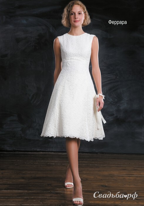Элегантность – и ничего лишнего! Именно так можно охарактеризовать свадебный наряд от отечественного бренда Topaza Pella. Платье с закрытой зоной декольте и скромным вырезом-лодочкой создаёт невинный образ. Юбка слегка расширяется и прикрывает колени. Эта женственная модель отличается безупречными формами и лаконичностью декора.