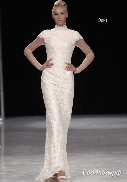 Кружевное свадебное платье от отечественного бренда Topaza Pella просто создано для венчания! Наряд с закрытым верхом, воротником-стойкой и длинными рукавами поможет создать невинный образ невесты. Наряд облегает фигуру и визуально удлиняет её: Вы будете казаться ещё выше. Эта роскошная модель представлена в нескольких цветах.