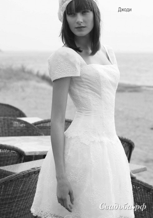 Нежное свадебное платье от отечественного бренда Topaza Pella поможет Вам почувствовать себя утончённой француженкой. Скромный вырез на груди сочетается с пышными рукавчиками. Корсет идеально садится по фигуре и подчёркивает её достоинства. Пышная юбка приоткрывает колени. По всей длине наряд украшен тонким орнаментом ручной работы.