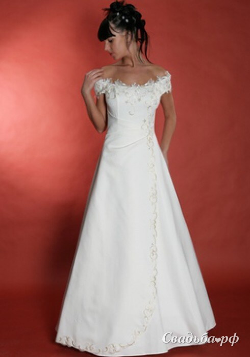 Классическое свадебное платье А-силуэта с красивой отделкой кружевом и лямками