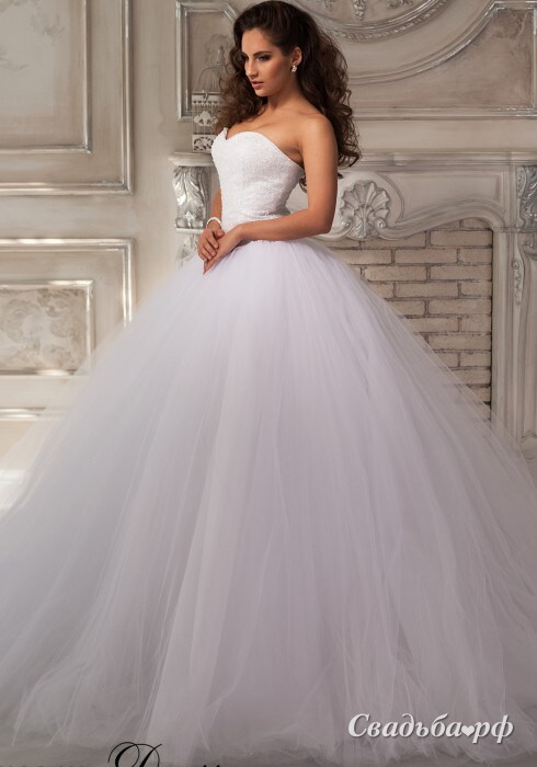 Пышное свадебное платье. Юбка выполнена из фатина, а корсет полностью расшит кристаллами.
