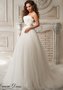 Свадебное платье выполнено из шелкового фатина и перьев.