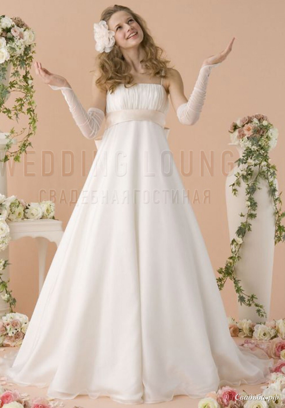 Совет: К этому платью рекомендуются полупрозрачные белые длинные перчатки и украшение из воздушной белой органзы в прическу или простая прозрачная белая фата.