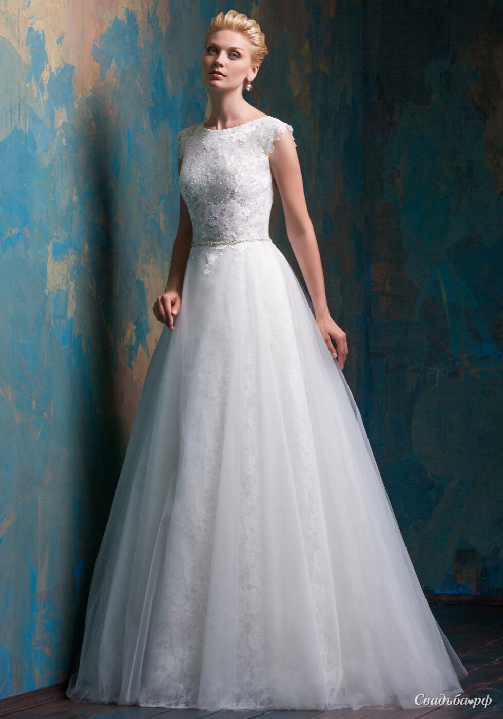 Удивительное платье – полностью кружевное, но сохранившее легкость и воздушность! Фактурные лепестки тонкого кружева на корсете и юбке облачены в тончайший слой шелкового фатина. Ткани и материалы: кружево, шелковый фатин. Цвет: молочный. Идея: подчеркнуть воздушность образа позволит длинная фата-вуаль из мягкого шелка.