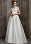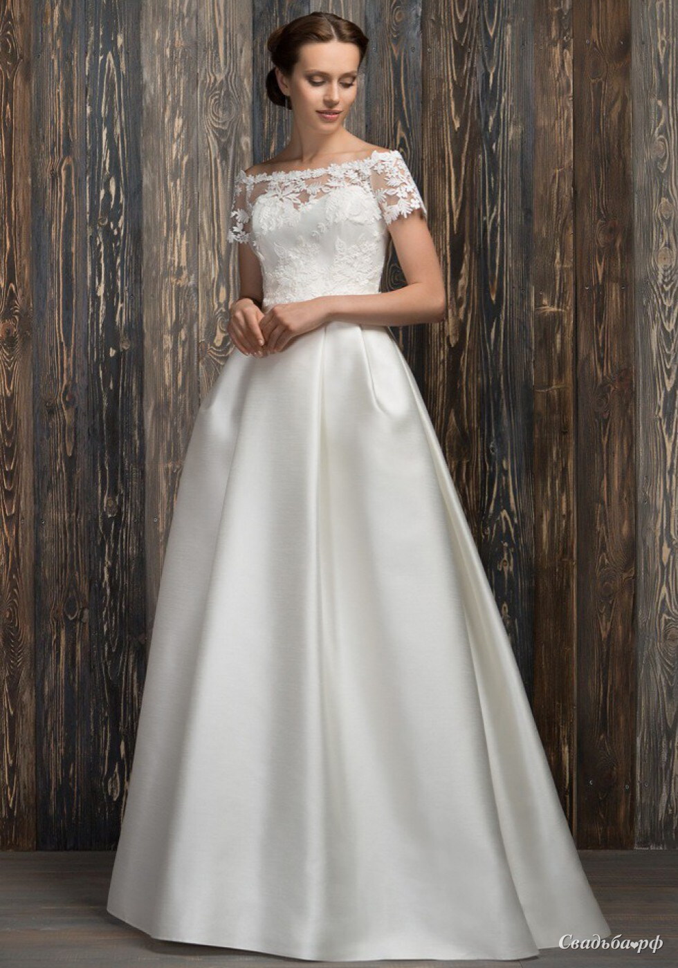Настоящая классика свадебного образа в современной интерпретации. Роскошное гладкое платье в сочетании с кружевным верхом из фактурного хлопкового кружева, изящный рукав и плавная линия декольте идеально подчеркнет женственность образа и чувственность момента.